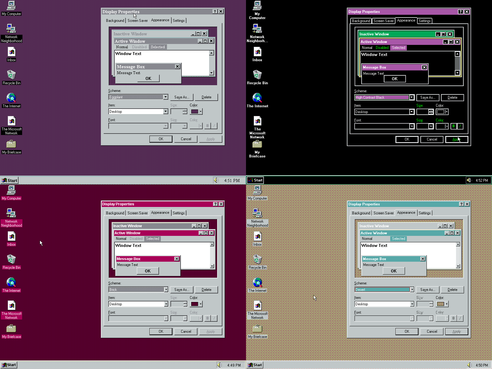 When Windows95 released back then in the 90s, it used to have some already pre-made presets of color schemes to be applied, examples like: